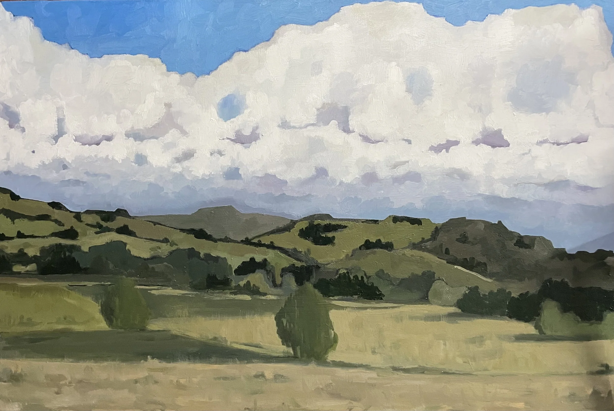 Clouds over Gippsland, oil on canvas, 610x915mm (24x36”), 2021.
